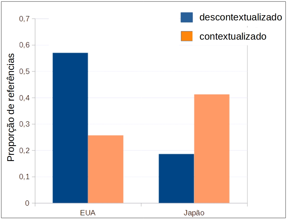 O exame dos resultados evidenciou o quanto o predomínio das descrições abstratas esperadas para o americanos, procedentes de uma cultura mais individualistas e com uma visão de eu majoritariamente abstrata, ocorreu apenas na condição em que o estudo foi conduzido com a utilização da versão original do Twenty Statement Test. Nas circunstâncias em que esta versão foi substituída pela implementação contextualizada do instrumento, isto é, quando o participante se referiu ao eu em um contexto específico, casa, escola ou numa relação com alguém mais próximo, os participantes japoneses apresentaram índices de respostas mais abstratas do que os participantes norte-americanos. Ainda que a conclusão de Cousins de que as respostas se referem muito mais à influência da cultura do que propriamente ao estilo cognitivo de quem vive no interior de cada uma destas culturas possa ser objeto de controvérsias teóricas, o estudo representa um belo exemplo de um tipo de pesquisa em que foram produzidas mudanças no plano contextual (os países de origem dos participantes) e na dimensão posicional (o tipo de condição criada pelo pesquisador para submeter uma hipótese empírica à prova).