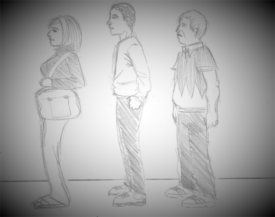 Observemos a imagem da figura 96, na qual identificamos três pessoas em uma fila. Como as percebemos? Se imaginarmos que se trata de uma fila, podemos nos fazer algumas perguntas.