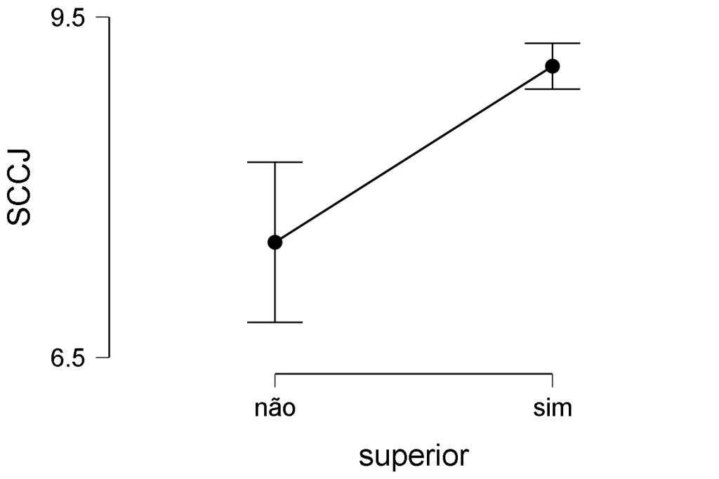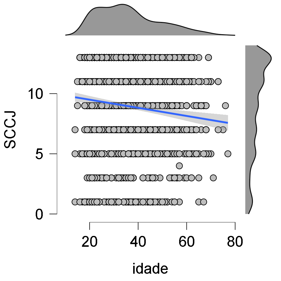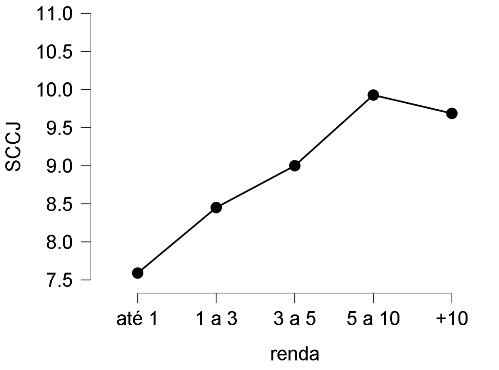 Foi possível identificar, adicionalmente, uma relação entre a adesão às CJ e o nível de escolaridade do participante (Mann-Whitney = 67578,000 , p <.001; tamanho de efeito = 0,225), com os participantes com níveis mais altos de escolaridade (média = 9,06; dp = 3,80) acolhendo mais as CJ do que os que informaram nível mais baixo de escolaridade (média = 7,16; dp = 4,03). Dada a esperada relação entre escolaridade e renda, também foi possível identificar uma correlação entre estas duas variáveis (rho de Spearman = 0,163 , p <.001), sendo possível inferir que participantes com maior nível de escolaridade e de renda mais alta tendem a acreditar mais nas crenças cientificamente justificadas.