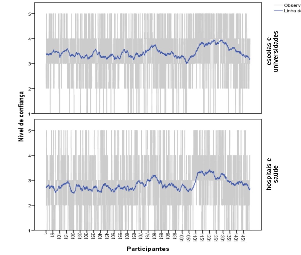 A confiança nos hospitais e nas instituições de saúde está positivamente associada com a satisfação com a vida. Os participantes que acolhem as CJ também se mostram mais satisfeitos do que os CT. Da mesma forma, estar frequentando ou ter frequentado um curso superior também aumenta a confiança nas instituições de saúde. Em contrapartida, quanto mais a direita no espectro político e mais jovem, menor a confiança nas instituições de saúde.