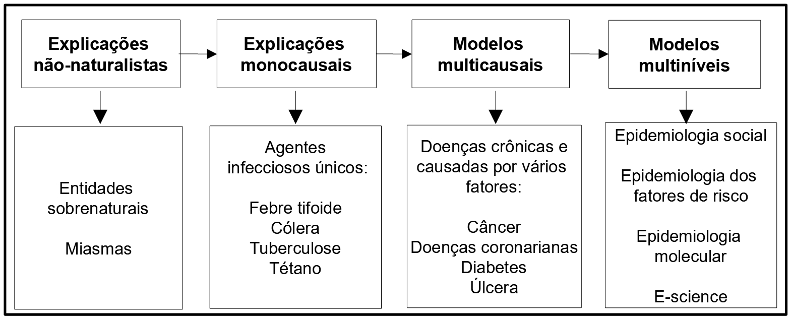 Na primeira metade do século XX, devido ao controle de boa parte das doenças infectocontagiosas, ganha prevalência as patologias de etiologia mais complexas, como o câncer, o diabetes, as úlceras e as doenças cardiovasculares, suscitando a transformação dos modelos epidemiológicos. As explicações monocausais perdem o sentido e são rapidamente substituídas por modelos explicativos que levavam em conta um conjunto de fatores. As hipóteses explicativas passaram a ter caráter multi ou interdisciplinar, abandonando-se em definitivo qualquer tentativa de explicar estas patologias mediante o desenvolvimento de explicações monocausais.